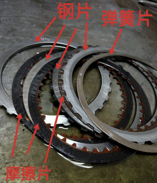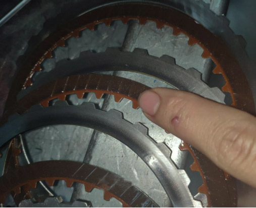 CVT变速箱开起来顿挫最直接的一个故障点来了:那就是摩擦片的磨损烧蚀。CVT变速箱只有两组片,一组倒挡一组前进挡,摩擦片的表面高温高压把细小的高树脂材质颗粒压在底座上,一张张叠起来传递动力的。表面发生了磨损和剥落,甚至有点烧,结合的时候就会冲击,打滑